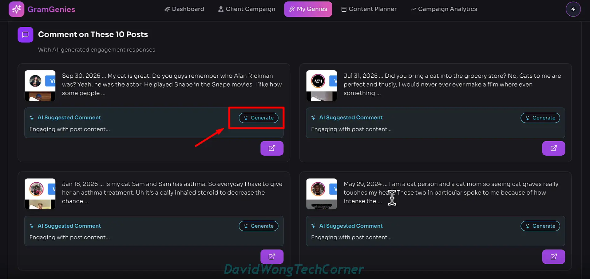 Click “Generate” and let the AI instantly suggest optimized comments for you: