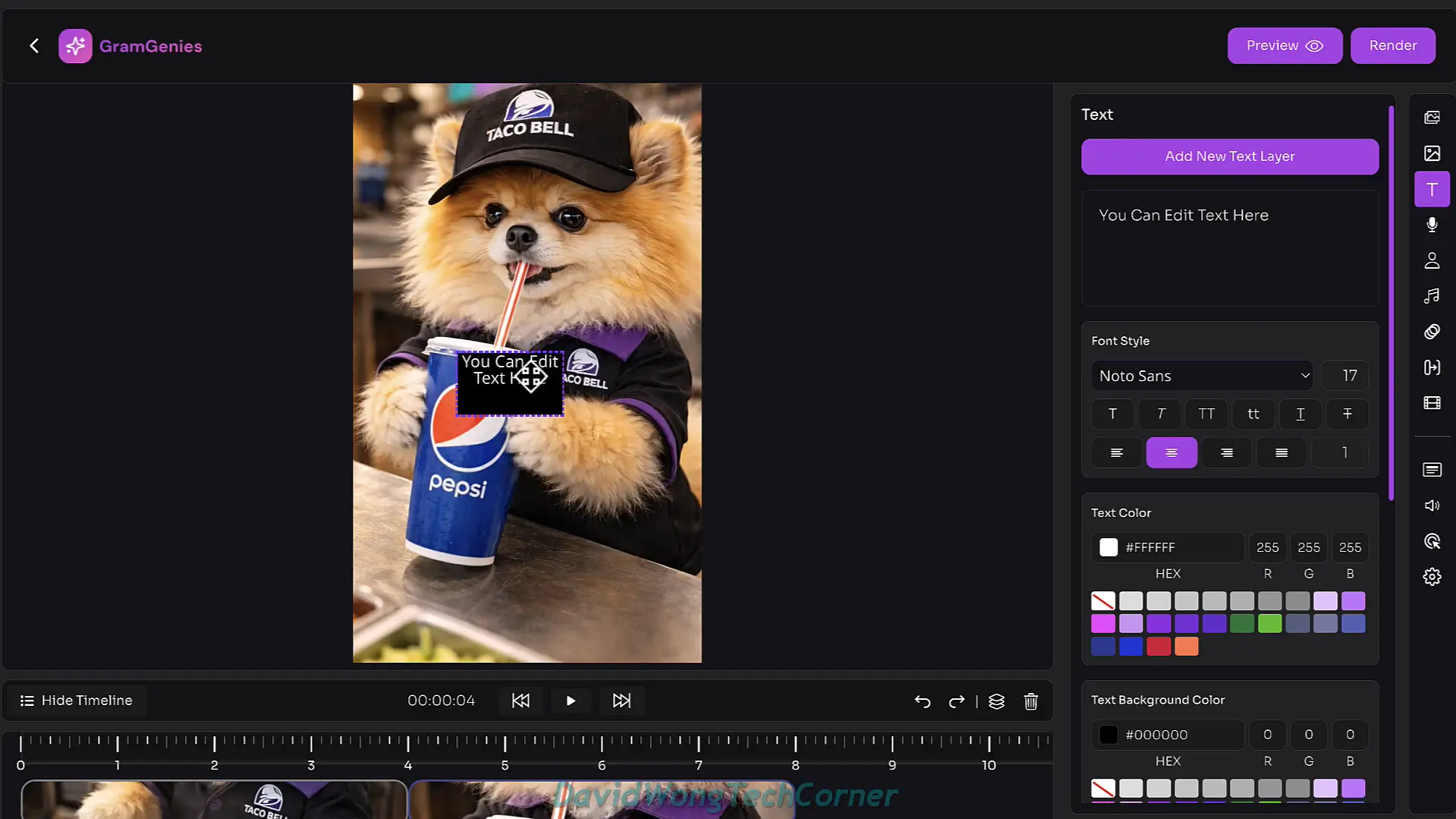 After generating the content, move into the editor to preview the video, timeline, and individual scenes. On the left, adjust the on-screen text. On the right, access editing tools to refine the final output. When everything looks right, preview the reel and click render to export a ready-to-post bottom-of-funnel video: