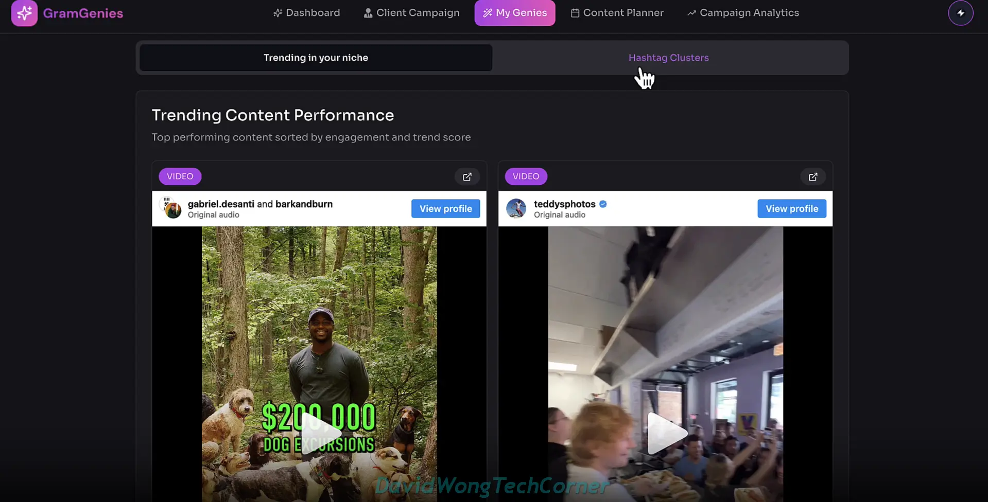 It looks for content ideas that are trending in your niche so you can create around what is already getting attention. It also shows top performing posts and videos you can model, which helps you shorten the learning curve and avoid guessing.