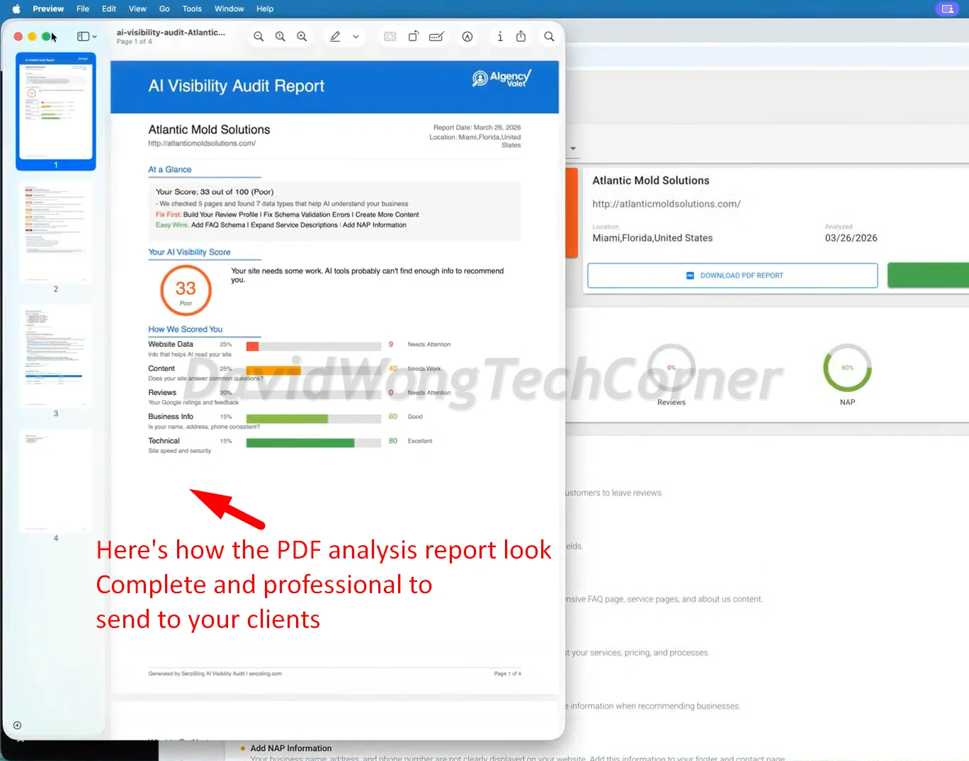 Once you have this report, you can download it and share it with a client as a clear breakdown of what needs work. Below is an example of how the report looks in PDF format: