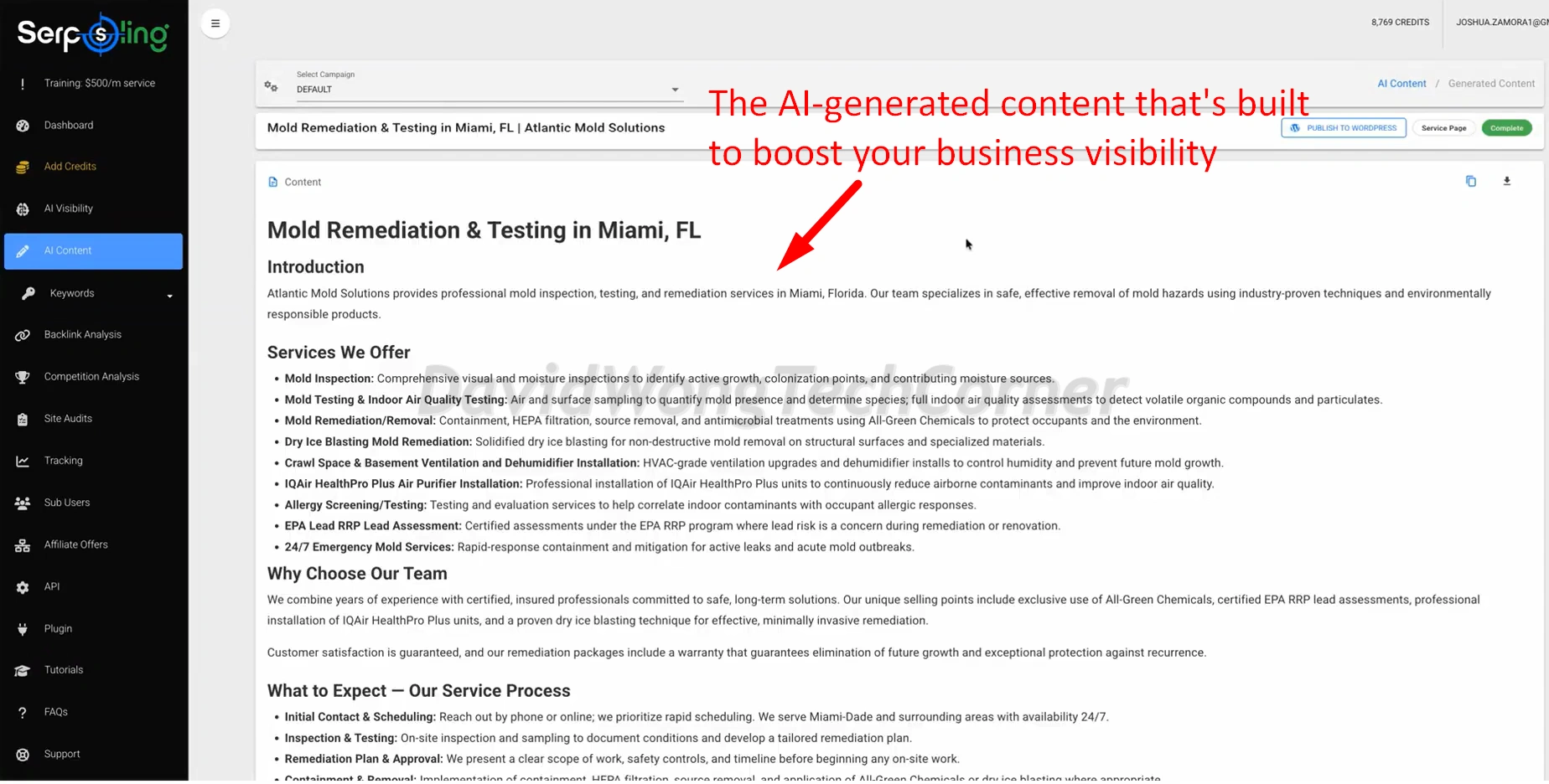 ✅ Unlimited AI-optimized content generation for websites, services, entities, and client campaigns