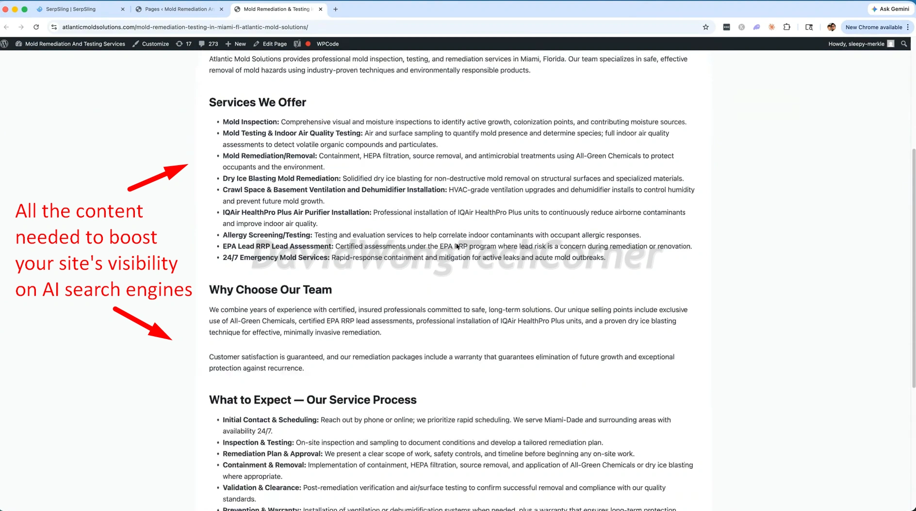 After publishing, the new content appears on the business website as a live page or post. At that stage, the site now has fresh supporting content based on the audit findings, giving it a better shot at stronger relevance, better structure, and improved visibility in AI search engines.